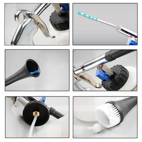 Denne højtryksrenser muliggør en hurtig og effektiv rengøring af både indersiden og ydersiden af bilen. Dens koniske dyse kombineret med en roterende handling sigter mod indgroet snavs. Kompatibel med enhver luftkompressor, den når nemt de svært tilgængelige områder.