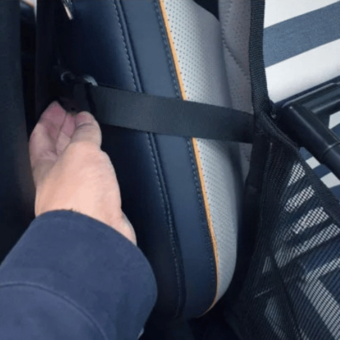 This foldable car seat keeps your dog safe while providing a comfortable space during the ride. Its airy design ensures good ventilation and a pleasant journey.